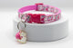Pet cat kitten hand made adjustable paw printed neck collar with big bell . Quick release buckle. Durable pet collar.