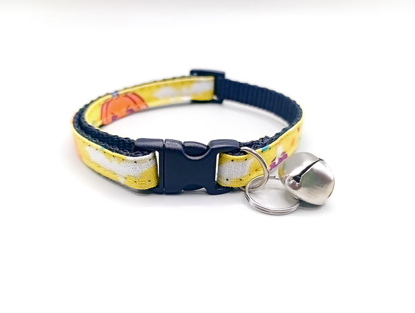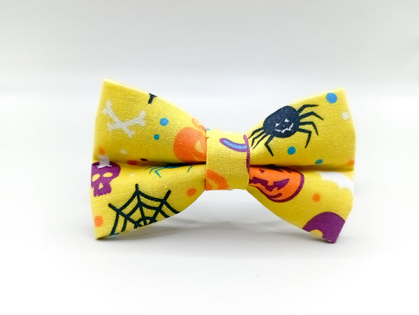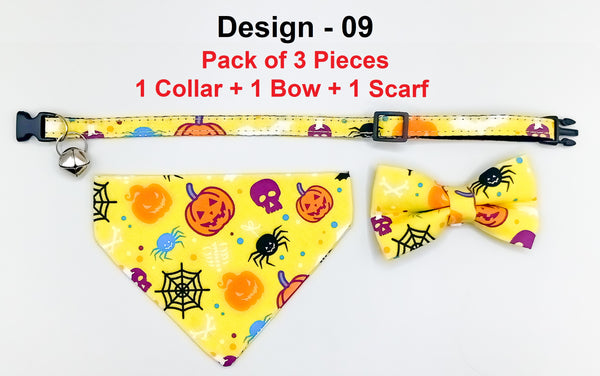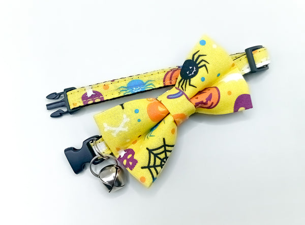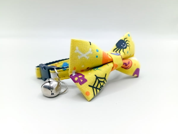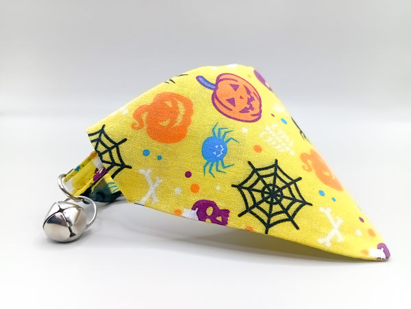 Hand made Skellington Printed bow, scarf style cat kitten pet neck collar with bell. Quick release buckle. Durable pet collar.