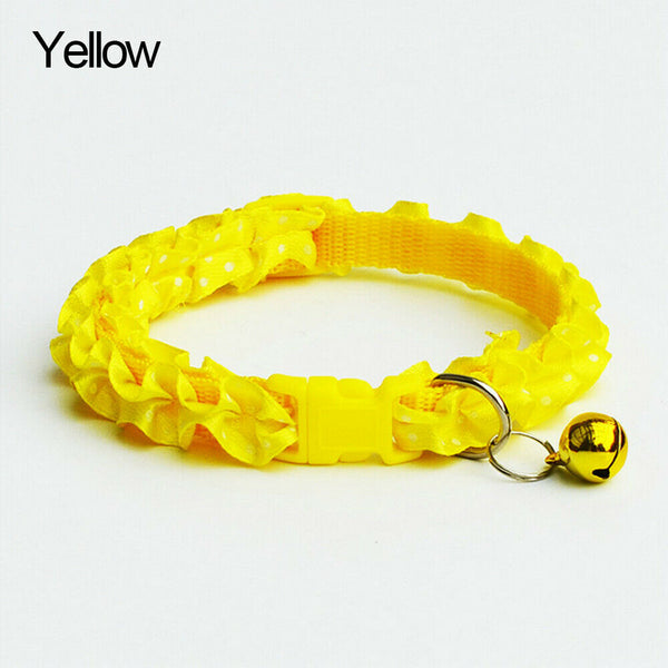 Polka Dots Ribbon Cat Kitten Neck Collar with Bell. Quick release buckle. Durable pet collar
