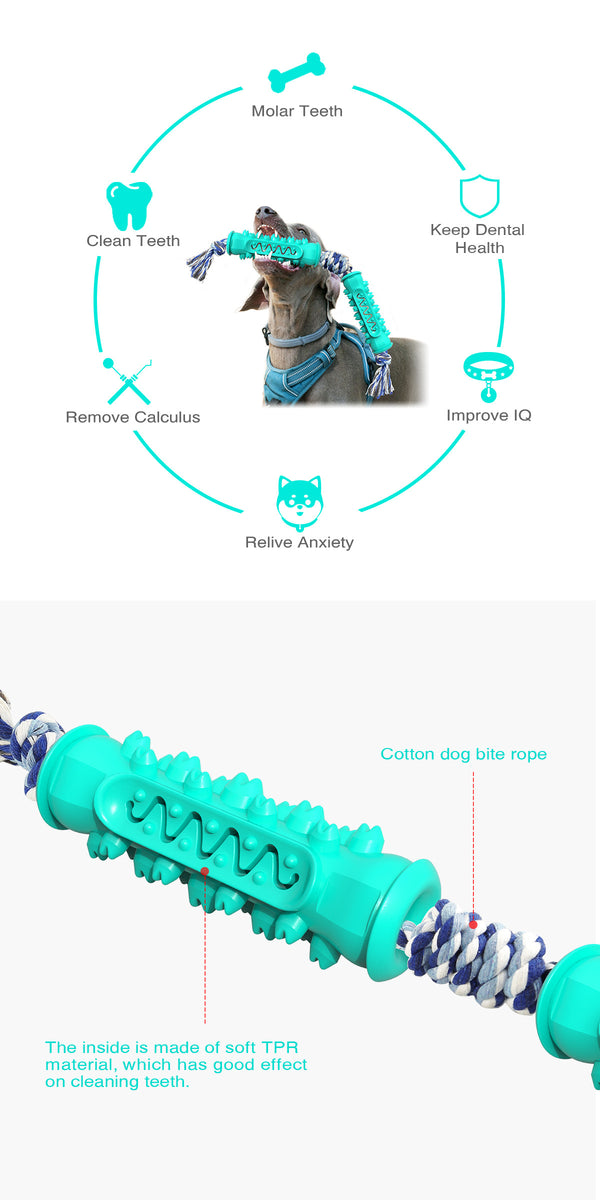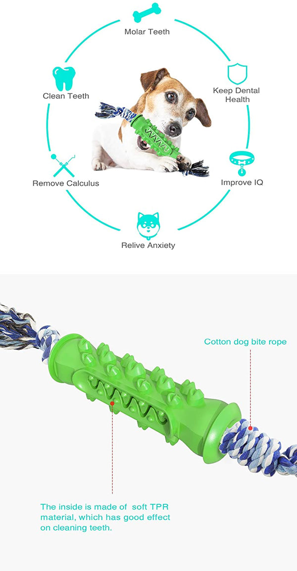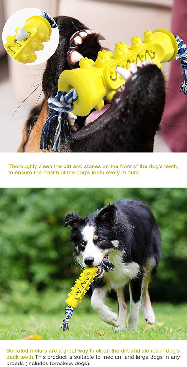 The serrated teeth can better clean the dirt and stones on the back teeth of pet dogs. Apply pet toothpaste or attractant outside the tooth cleaning channel to better clean the pet dog's teeth.