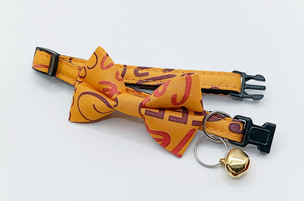 Hand made scarf bow style cat kitten pet neck collar with golden bell. Quick release buckle. Durable pet collar.